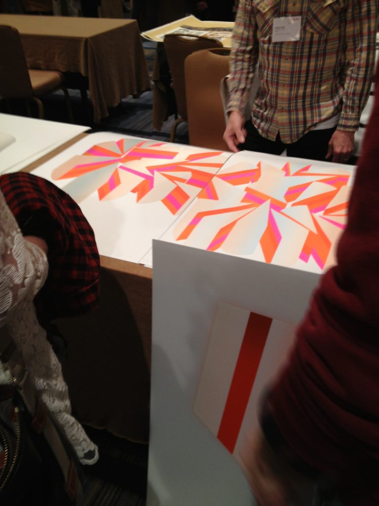 I recently returned from the 2014 SGCI conference in San Francisco. As always it was great to connect and reconnect with printmakers from around the world. Some highlights included Kathan Brown’s talk, the Open Portfolio sessions, and the opportunity to be introduced to Jiri Anderle’s sublime work in the flesh. Some products to try including water-based etching ink by Charbonnel and a non-toxic ground called B.I.G (it can apparently stand-in for hard, soft and aquatint grounds – available at Takach soon). All my fellow silkscreen friends were nerding-out about a new screen re-streching system from Squeegeeville (who also have some great silkscreen books available).