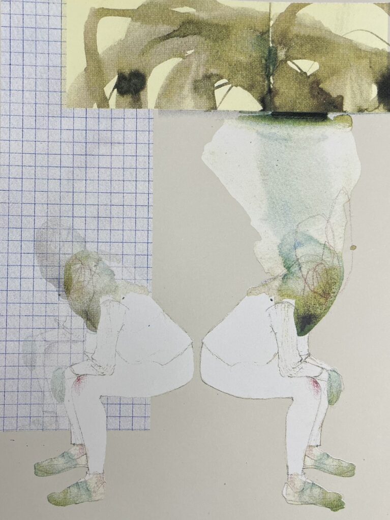 The liminal state of waiting is strongly connected to these transitions between everyday and medical spaces. This state of not-knowing can be stressful and strange, where worst-case scenarios are explored and weighed against the possibility that it might be nothing. Time becomes odd, it can speed up or drag on, and the internal dialogue can make you feel as though you exist in a different plane or a suspended reality. In my prints, bodies drift and disappear into their surroundings, slip between both sides of the paper, collapse and expand, physically enacting the mental state of waiting.