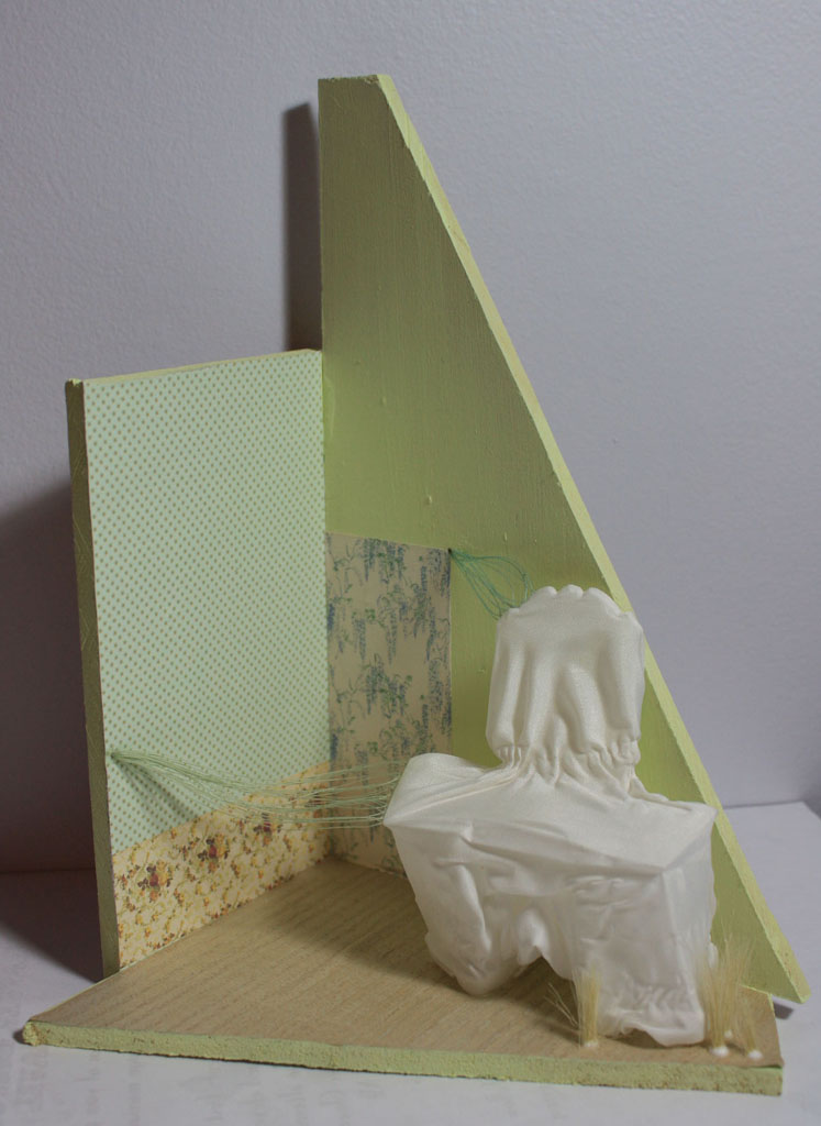 A Few Weeks, A Couple of Years Published January 6, 2012 at 747 × 1024 in The Imagined Past A Few Weeks, A Couple of Years Wood, paint, wallpaper, polyester, thread
